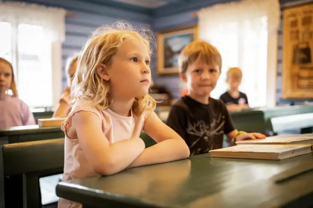 På et opplegg i skolestua på Grønsetskulen får barna sitte på skolebenker som ble brukt på 18-1900-tallet mens skolen var i bruk. Vi forteller litt om norsk utdanningshistorie og viser frem rekvisitter fra den tiden da skolen var i bruk. Det er gamle skolebøker man kan få bla i, som de eldste av lærerne husker fra sin egen tid på skolebenken.