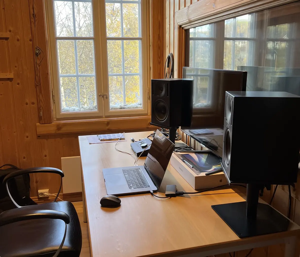The Buskerud Centre for Traditional Music houses a small recording studio with an acoustically streated recording room of 14m² and connections to a large hall of 80m². We have high-quality microphones from Neumann, Audio-Technica, Shure, and Sennheiser. The studio is located in a large three-story building with a kitchen, rehearsal rooms, and accommodation for up to 20 people, making it well-suited for longer recording projects, residencies, pre-production for tours, etc.