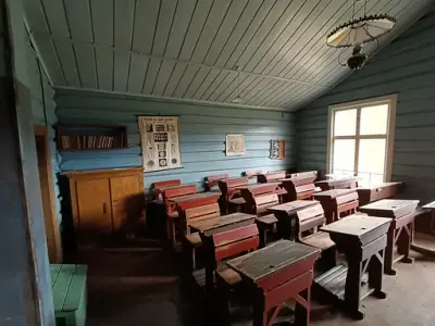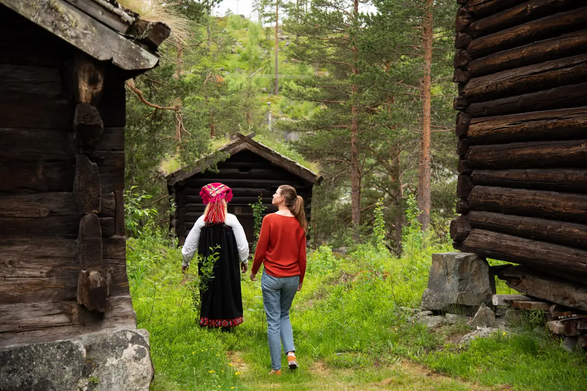 In the exhibition building, visitors can see displays of rose-painted items and traditional folk costumes from the area, showing how people in Upper Hallingdal dressed in the past. The museum also has two finely decorated rose-painted buildings: the house from Nestegard in Hovet, painted by Kittil Rygg (d. 1809) from Hallingdal, and the house from Raunsgard in Ustedalen, painted by Kristen Aanstad (1746–1832) from Gudbrandsdalen.