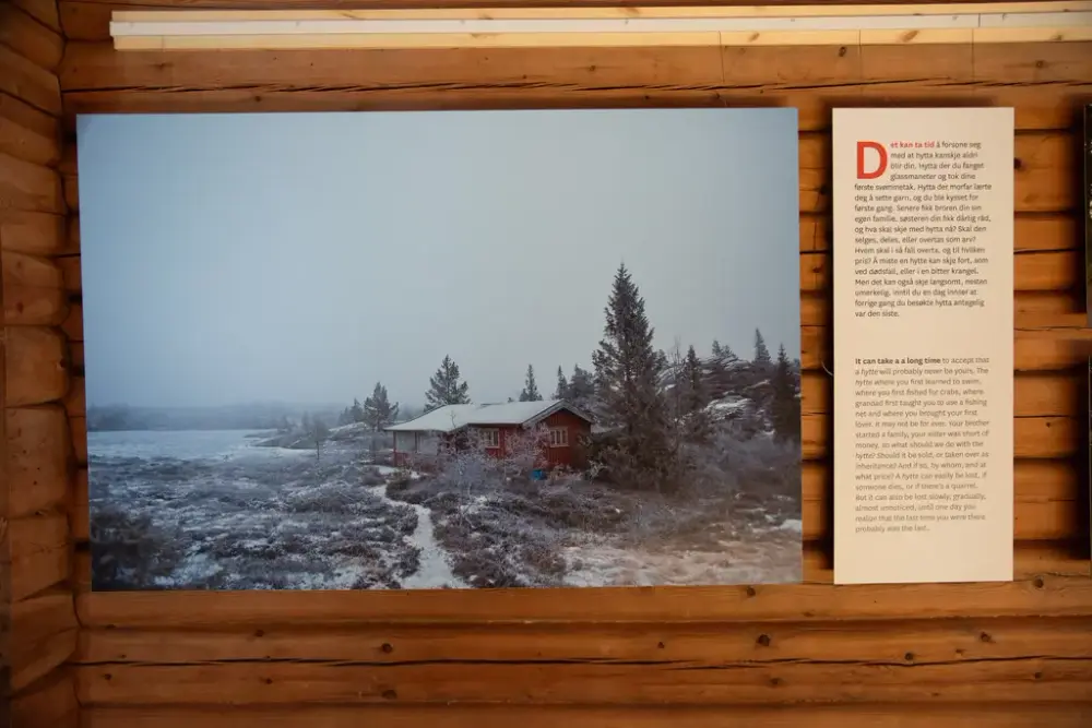Utstillingen "Hytta: Fire vegger rundt en drøm" ble vist i Tandberg-bygget på Hallingdal museum sommeren 2023.