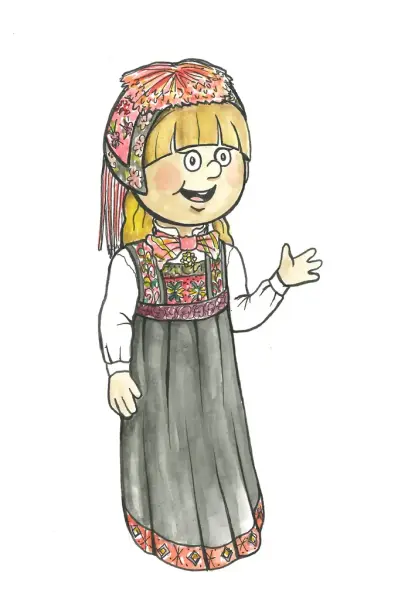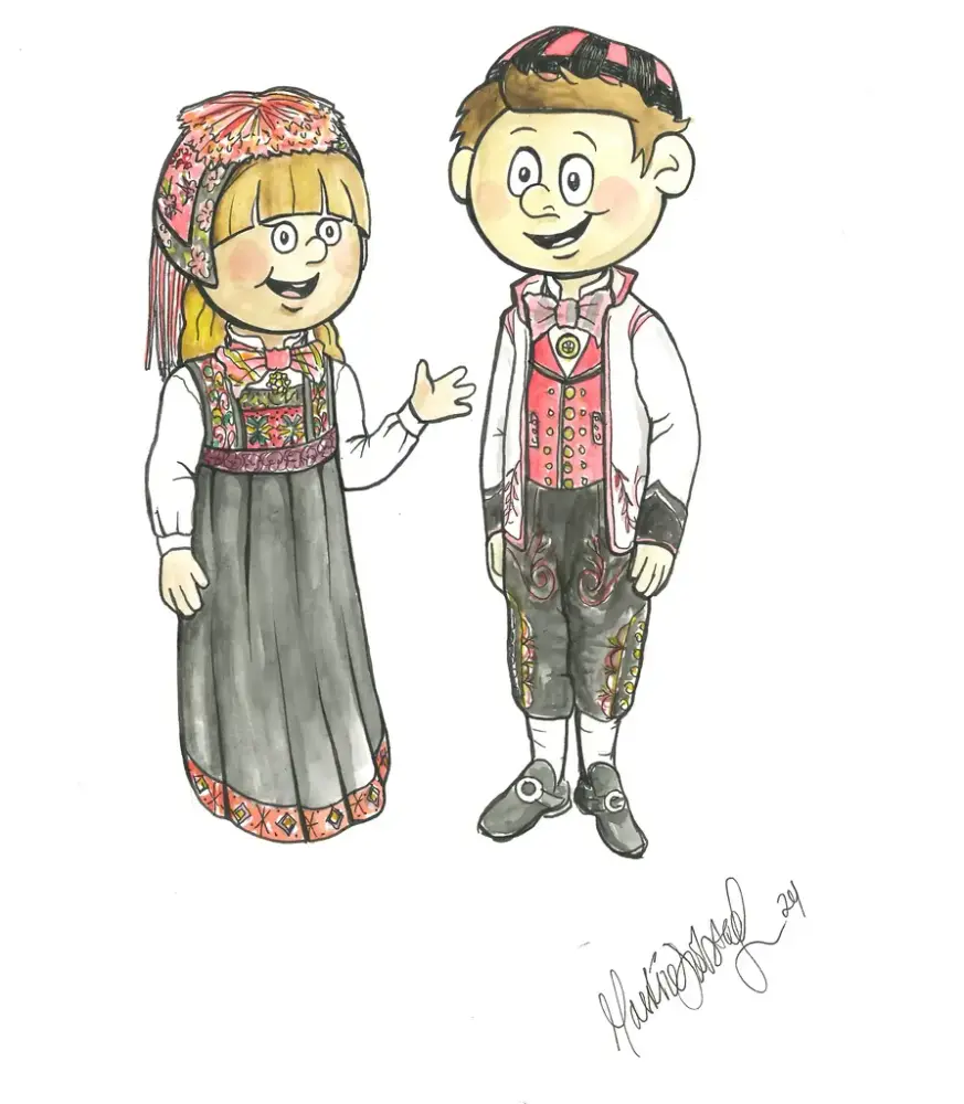 Idun og Isak er teikna av Martine Solstad Larsen/Historisk Kunst og Haandverk. Klikk på knappen under for å laste ned pdf for å fargelegge Idun og Isak.