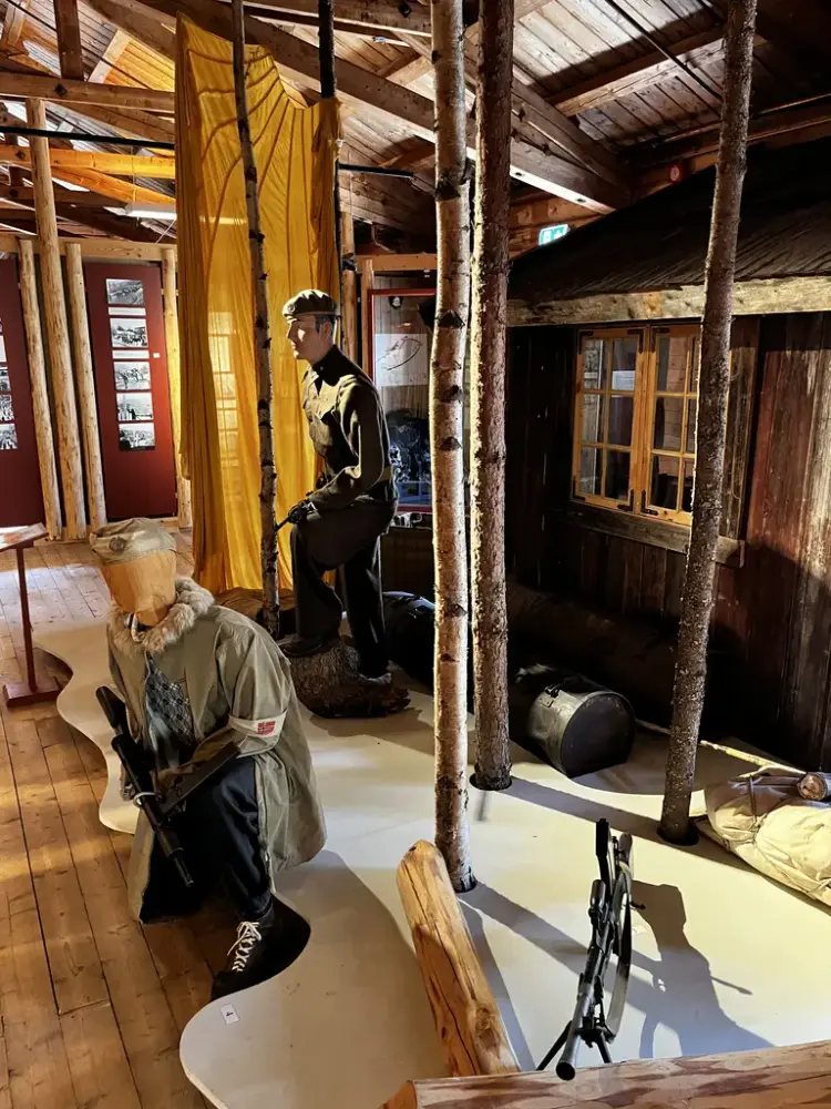 Utstillingen ble først oppført på 1990-tallet, og delvis fornyet i 2015. I utstillingen får du et innblikk i livet og krigshandlingene i Hallingdal under 2. verdenskrig. Blant annet fortelles historien om det britiske flyet som styrtet ved Saupeset i Rukkedalen i 1944.