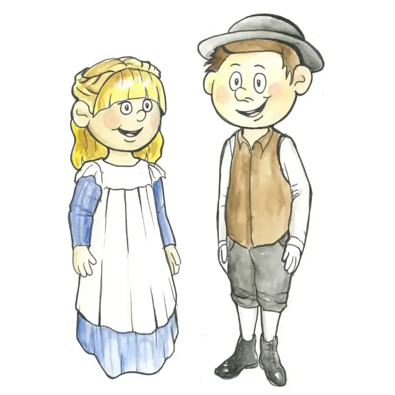 Idun og Isak er tegnet av Martine Solstad Larsen, Historisk kunst og håndverk.