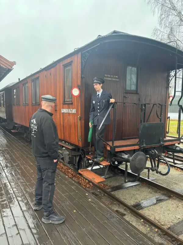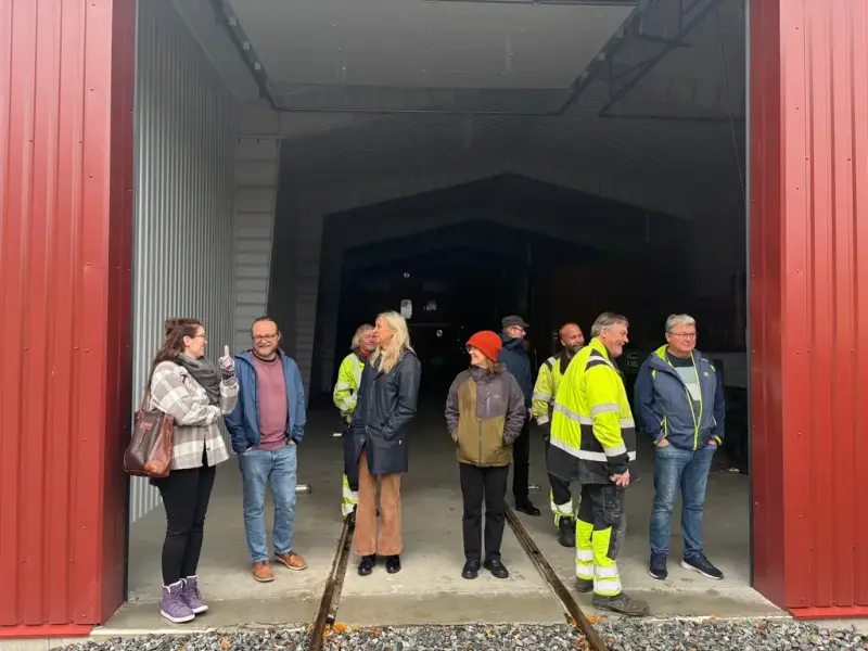 Videre kjørte vi tog til Kløftefoss, der vi fikk vist frem både jernbaneverkstedet vårt og den nye hallen der vi nå lagrer rullende materiell under tak.
