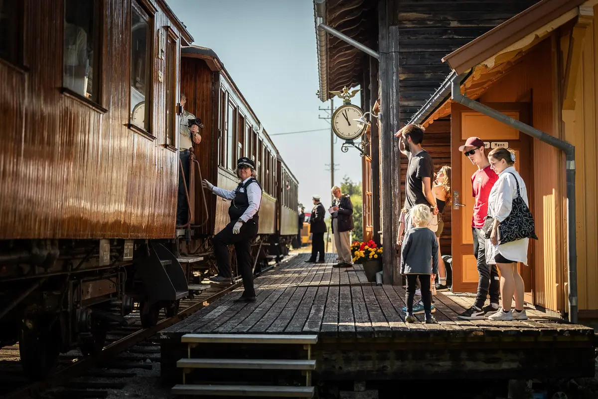 Krøderbanen Engasjerende samferdselshistorie Åpningstider Utstilling 29. juni - 31. august Lørdag 11-16 Søndag 11-16 Priser For toget: Se NJK Krøderbanen For utstilling Voksne: 100Barn 4-18: 60 Kontakt oss Tlf: +47 32 14 76 03 Send oss e-post Besøksadresse Krøderbanen Museumsjernbane Vestsideveien 4 3536 Krødsherad Kart Damplok 411 Etter 35 års istandsetting er 411 endeling på skinner igjen. Ta toget! Om sommeren går det tog hver søndag Hva skjer? Stasjonsområdet Barn og Unge Norsk Jernbaneklubb Viktige innganger