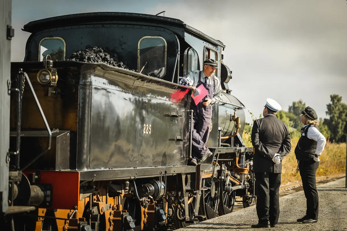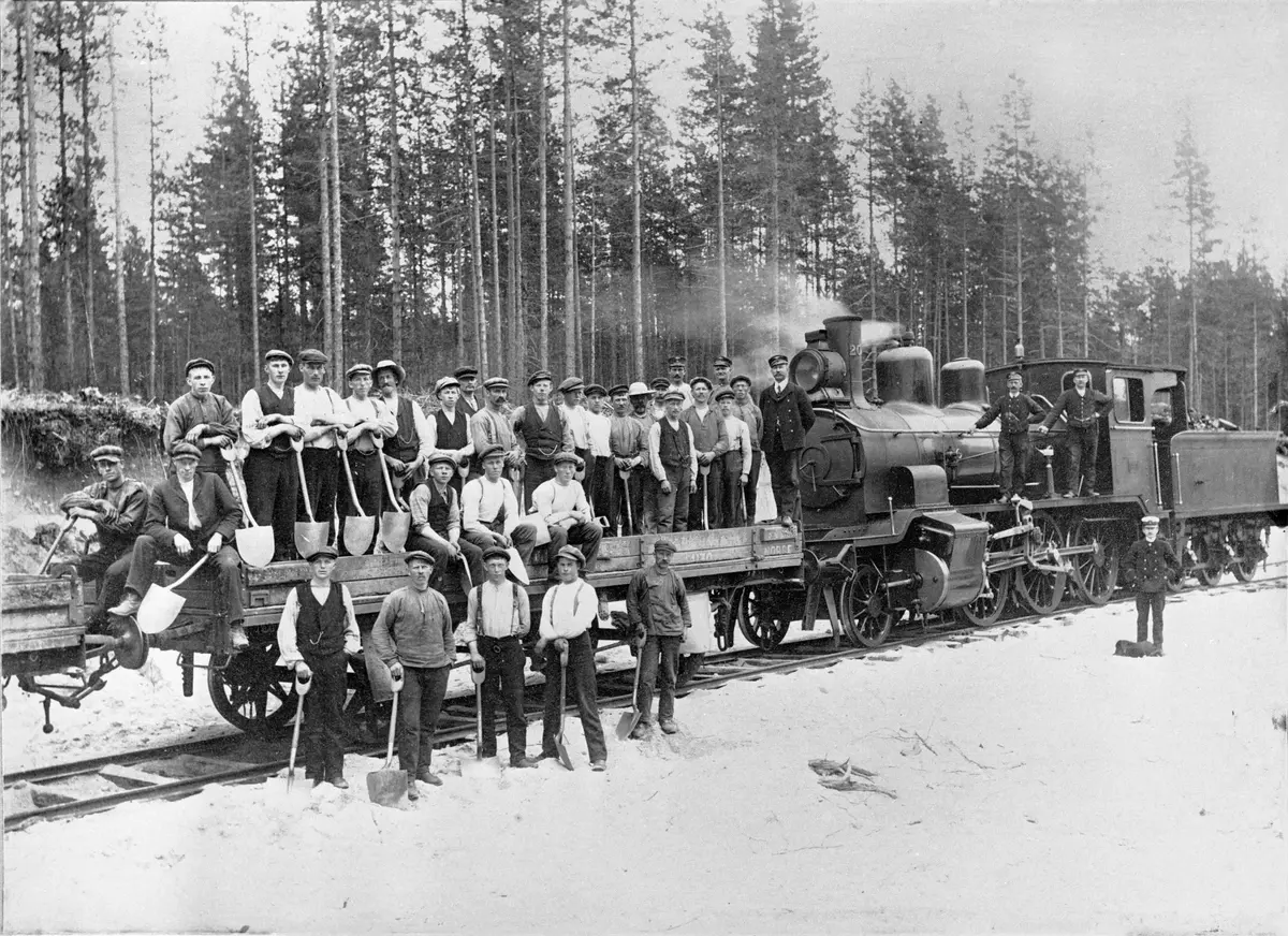 Krøderbanen was converted from narrow to standard gauge in 1909. It happened in a single day. After the evening train ran on October 30, 1909, all narrow-gauge equipment was gathered. The next day, 1,000 men went to work, relaying the tracks. The morning train on November 1 was the first standard-gauge train on the line, marking the start of a new era in the history of Krøderbanen.