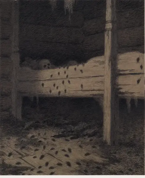 The first drawings for "Svartedauen" were made on Skåtøy as early as 1889. But it was not until he came to the old sheriff's estate Sole in Eggedal in 1896, with its dilapidated buildings, nooks and crannies, that he found the final motifs for the book. In the stable he found motifs for two of the most famous illustrations in the book, "Pesta i Trappa" and "Musstad". The stable stands there to this day and it is not difficult to see the inspiration for these illustrations.