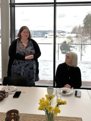 Tirsdag 17. februar markerte vi at vår mangeårige økonomiansvarlig, Kristin Tronrud, snart blir pensjonist. Under dekke av at vi skulle ha et møte fikk vi "lurt" henne med til Veien kulturminnepark, der 20 kollegaer ventet for å markere en lang og innholdsrik karriere innen museumsfeltet i Ringerike og Buskerud. Fem taler, blomster, gaver og mange gode ord vitner om en medarbeider og kollega som virkelig har satt spor etter seg i Buskerudmuseene. Takk for samarbeidet, takk for laget og takk for super innsats for museene på Ringerike og for Buskerudmuseene, Kristin! Og masse lykke til som aktiv pensjonist, vi kommer til å savne deg i Buskerudmuseene.