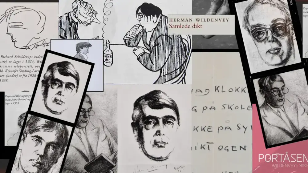 Vi ser også på noen av de mest ikoniske karikaturtegningene av Wildenvey og sammenligner på nåtidens karikaturer. Live demonstrasjon av tegneserie-tegning på storskjerm, mens Ole leser dikt. Samtalen er ledet av venneforeningens Trine Bye.