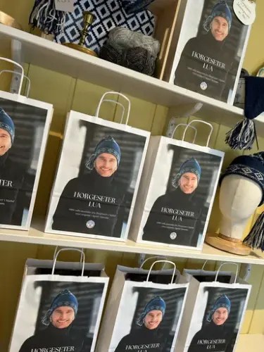 Horgeseterlua selges som strikkepakke med garn til ei lue og et hefte med mønster og historie, til kun kr. 350. Perfekt som gave til deg selv eller en historieinteressert strikker du kjenner!
