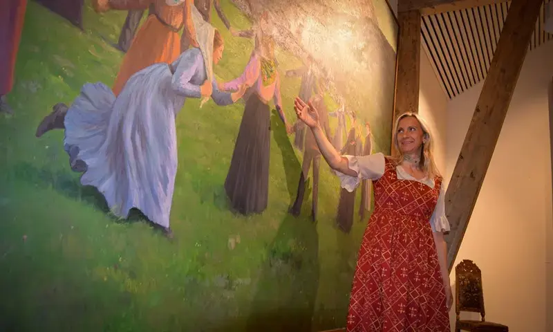 Galleri Skredsvig, which is located in the newly built barn at Hagan, has since its opening in 2016 shown changing themed exhibitions with art by Chr. Skredsvig every year. This is to show the breadth of Skredsvig's oeuvre and give his art the attention it deserves. Skredsvig is the only Norwegian painter to achieve a gold medal at the Salon in Paris, and the medal is displayed in the gallery along with other awards.