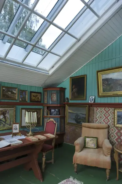 With all the extensions, the house became very personal and is in itself worth a voyage of discovery. Both the house and the interior have been untouched since Skredsvig and his family lived there. The house is beautifully decorated with a mix of antique peasant furniture and objects from Skredsvig's foreign travels. On the walls hang his own and artist friends' paintings and drawings, a collection of a total of approx. 150 original works.