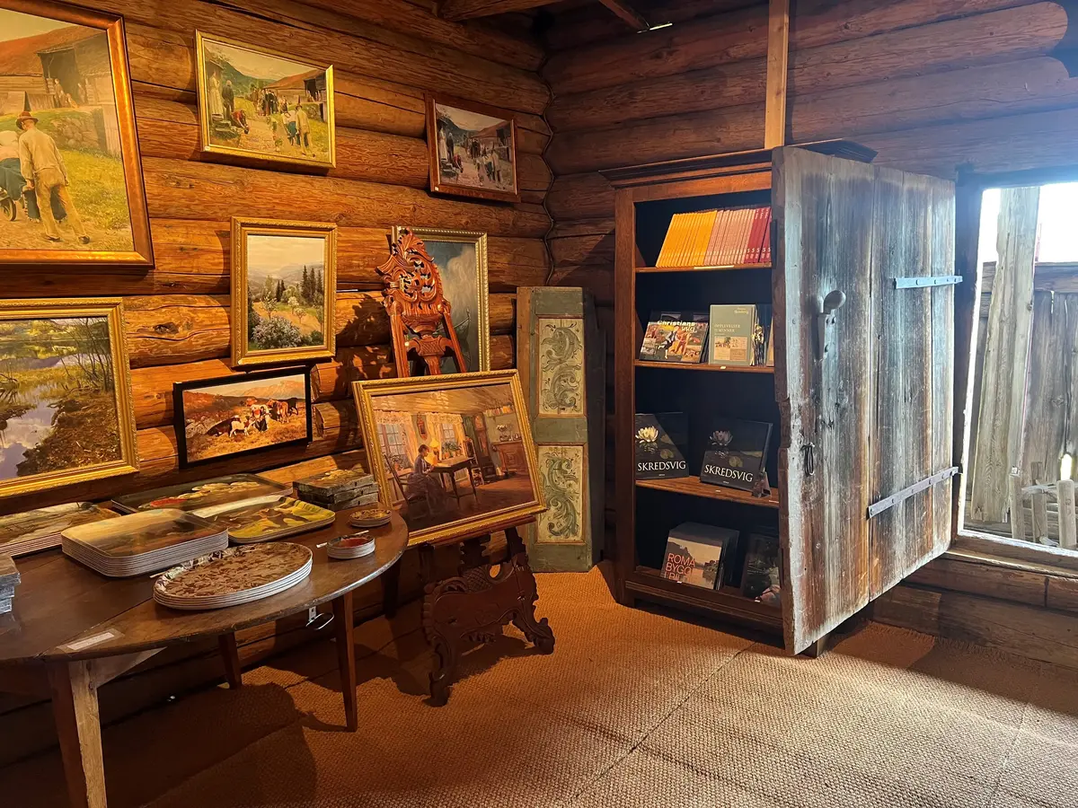 Our museum shop is located on the 2nd floor in the old storehouse from 1668. Here you will find a large selection of books, posters, reproductions with frames and a large selection of gift items with Chr. Skredsvig's well-known motifs that are sold exclusively with us.