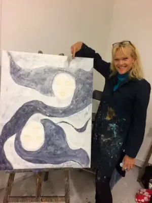 Etter et møte med Susan, tente vi også på idéen om en slik utstilling og Susan inviterte inn tre andre kunstnere, Hellen Bøvre Nilsen, Sissel Sem Stoltenberg og Unn Elisabeth Rindal til en salgsutstilling.