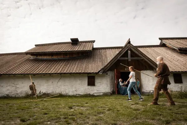 Bli med på en interaktiv gjenfortelling av sagaen om Gunnlaug Ormstunge. Elevene deltar som familiene til hovedpersonene, og må løse uenighetene på alltinget. De må ta stilling til moralske dilemmaer fra jernalderen/middelalderen, og vi sammenlikner med moderne tiders etikk og rettsforståelse.
