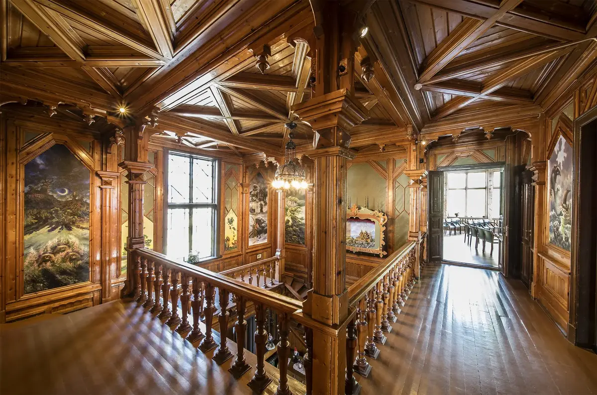 Trappeoppgangen/hallen er dekorert av Egil Torin Næsheim. Han har også vært med på utviklingen av eventyrmuseet med sine mange veggfaste bilder i tillegg til illustrasjoner til «Eventyret om trollet på Villa Fridheim» skrevet av Terje Bråtner.