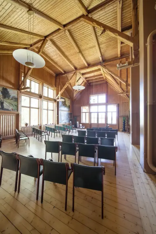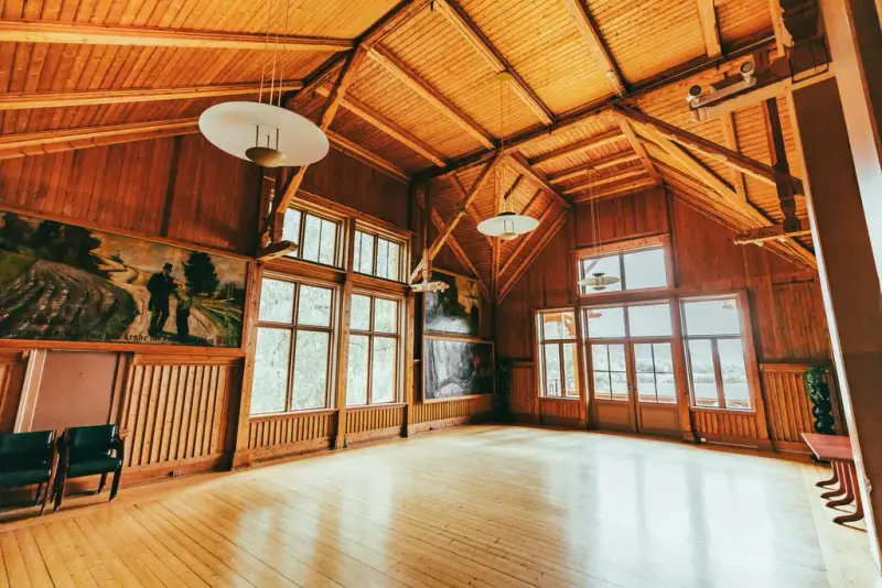 I 2. etasje finner du festsalen, den er inspirert av dragestilen, hvor utsmykningene i taket setter deg tilbake i tid. De store maleriene på veggene og de høye vinduene med utsikt mot Krøderfjorden bidrar til den spesielle opplevelsen. Når salen blir pyntet med kandelabre og hvite duker, er det bare for gjestene å nyte følelsen av gammel storhetstid.
