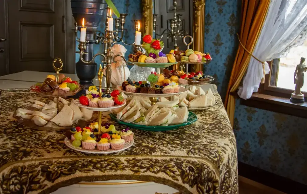 Afternoon Tea må forhåndsbestilles minst 7 dager før. Serveres til grupper mellom 12 og 30 personer i museets åpningstid mellom kl.13-16. Grupper utenom sesong og ordinær åpningstid kan bestille etter avtale.